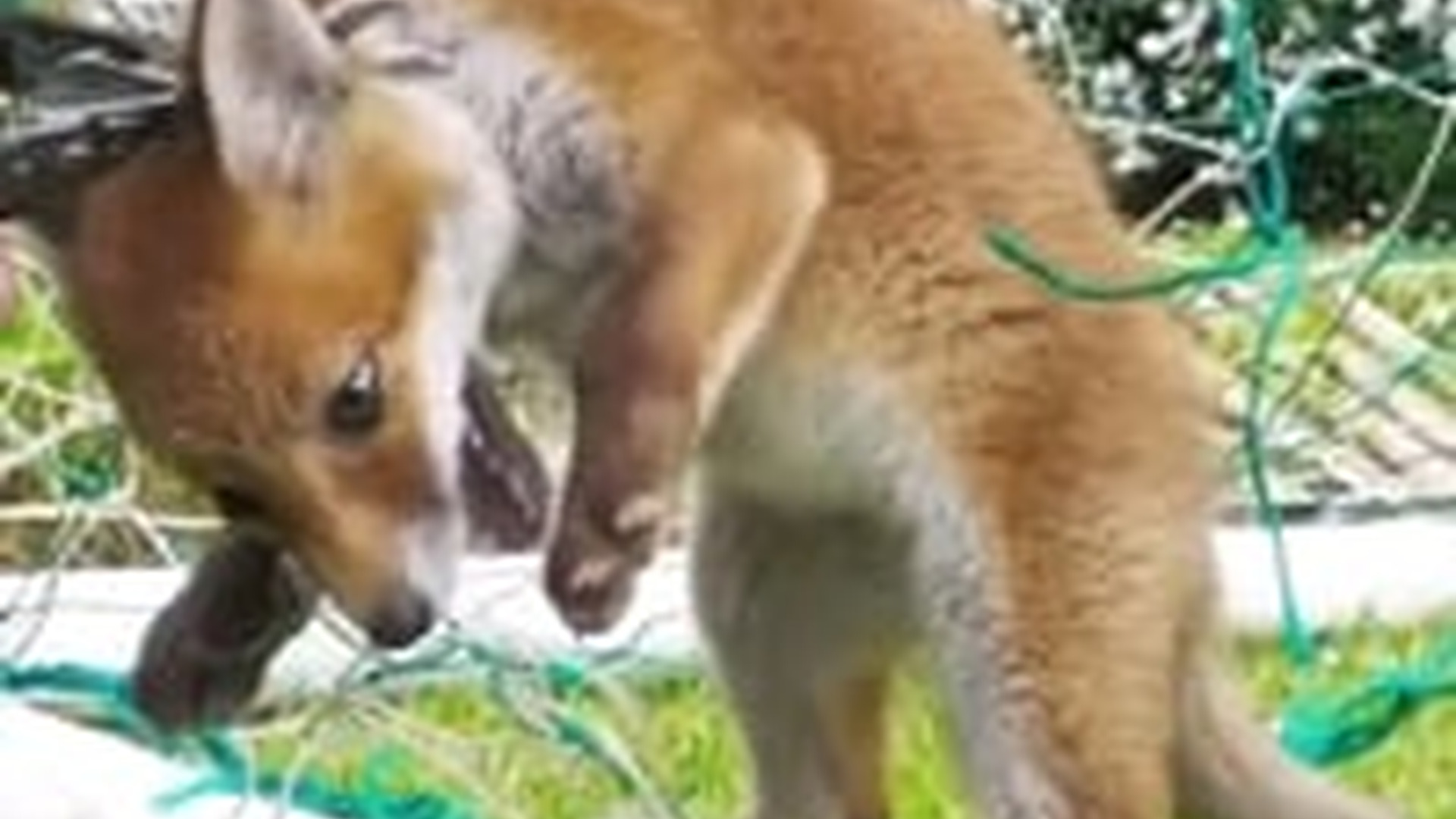 N1004037_A terrified fox trapped in a net struggled desperately to break free and survive