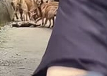 N1003007_A Stray Cat Was Surrounded by Dogs Until Someone Stepped In