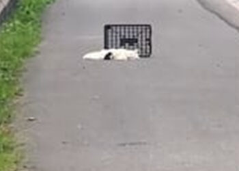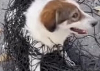 N0203025_Dog Tangled in Football Net Struggled to Break Free